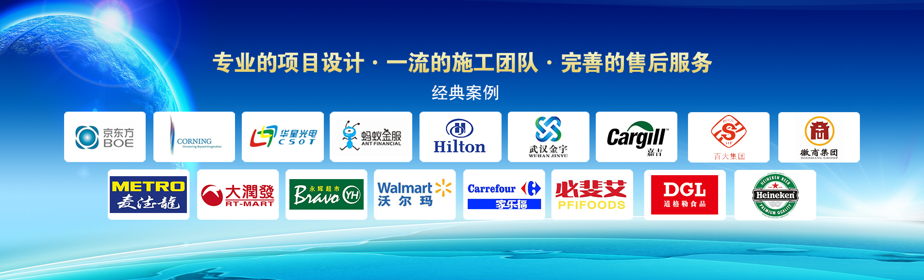 冷凍冷藏設備大型冷庫項目: 武漢中百物流冷庫(40000㎡)、蘇州、北京普洛斯大型物流庫(17000㎡)、沈陽佳德物流冷庫(20000㎡)、上海東航配餐物流庫(6000㎡)、杭州華商勾莊物流冷庫(24000㎡)、安徽安心蔬菜綠色食品冷庫(12000㎡)、武漢金宇冷庫(35000㎡)、必斐艾食品廠(14000㎡)、中國-東盟(百色)農(nóng)產(chǎn)品交易中心冷庫物流工程(30000㎡)、遵鐵物流冷鏈物流區(qū)建設項目中心冷庫物流工程(16500㎡)、長沙云冷產(chǎn)業(yè)園冷庫物流工程(21000㎡)等;大型中央空調項目: 武漢康寧顯示玻璃廠廠房、武漢京東方模組廠房、武漢華星光電模組廠房、深圳華星光電模組廠房,杭州阿里巴巴辦公樓,舟山波音737機場辦公樓,南京江北能源站、上海金融大酒店等